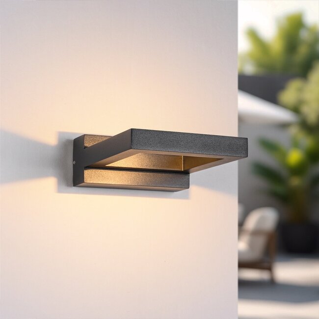 La base en aluminium noir de la lampe mesure 54 cm de haut, 13 cm de large et 16,6 cm de profondeur à partir du mur. Une valeur IP54 indique que la lampe murale Vince est résistante à la pluie et à la poussière.