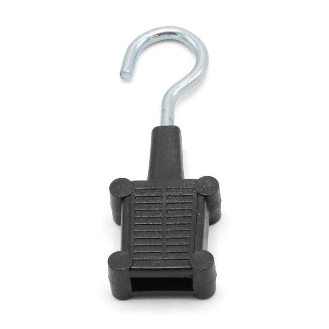 Le crochet d’extrémité professionnel est le plus robuste des deux modèles. Grâce à son boîtier supplémentaire, le raccord n’est pas alourdi par le poids du câble de guirlande guinguette. Malgré cela, nous recommandons de ne pas laisser la guirlande guinguette s’étendre sur plus de 3 mètres sans soutien afin d’éviter tout risque d’endommagement.
