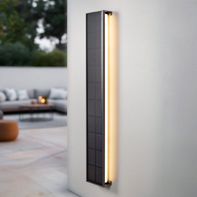 Vous êtes à la recherche d'une applique solaire au design simple et épuré ? Dorien est l'applique moderne que vous recherchez. Avec son aspect fin et élégant, cette lampe solaire d'extérieur s'adapte à une grande variété de styles. La source lumineuse LED de Dorien fonctionne grâce à une batterie interne qui est rechargée par le panneau solaire situé à l'avant de la lampe. Cela la rend non seulement durable, mais aussi facile à fixer. Il est possible de choisir entre quatre niveaux de luminosité (en lumens), qui déterminent la durée totale d'utilisation de la lampe avant qu'elle n'ait besoin d'être rechargée. Le premier réglage permet d'obtenir 225 lumens (25 %, 8 heures de lumière), le deuxième 450 lumens (50 %, 4 heures de lumière), le troisième 675 lumens (75 %, 2,6 heures de lumière) et le quatrième 900 lumens (100 %, 2 heures de lumière). Placez Dorien à plusieurs endroits de votre maison pour créer un magnifique plan d'éclairage.