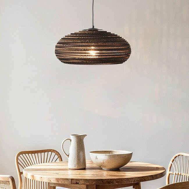 La suspension Haze s'intègre subtilement à tous les intérieurs. Avec ses lignes épurées, sa finition noire profonde et son design sobre, elle s'intègre parfaitement aux espaces modernes, industriels ou minimalistes. Son intérieur blanc offre une douce réflexion de la lumière, apportant une ambiance chaleureuse à chaque pièce. Qu'elle soit suspendue au-dessus d'une table à manger ou dans une entrée élégante, Haze apporte toujours une touche de simplicité raffinée. Grâce à sa douille E27 (ampoule non incluse), créez l'ambiance de votre choix, par exemple avec une ampoule à lumière chaude ou une ampoule à filament décorative.