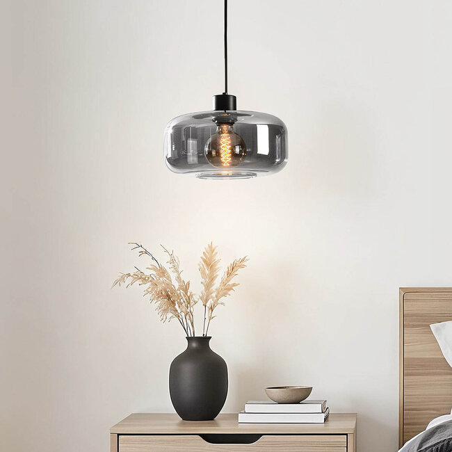 Envie d'une élégance subtile ? La suspension Shade est le choix idéal. Son design contemporain s'intègre à presque tous les intérieurs. Son pied en métal noir apporte une touche d'audace, tandis que le verre fumé qui entoure la lampe lui confère une allure moderne. Associez le plafonnier Dome à la suspension Shade pour créer une ambiance hôtelière chic dans votre intérieur.