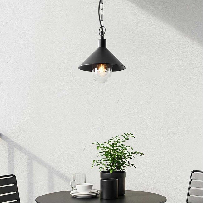 Si vous êtes à la recherche d'une lampe suspendue intemporelle, choisissez Jette. Jette se caractérise par un abat-jour traditionnel sous lequel se trouve la source lumineuse. Avec sa couleur noire et sa forme épurée, cette lampe s'intègre parfaitement dans un style de vie contemporain, industriel ou campagnard. Un design intemporel, idéal sous un auvent ou une terrasse couverte.