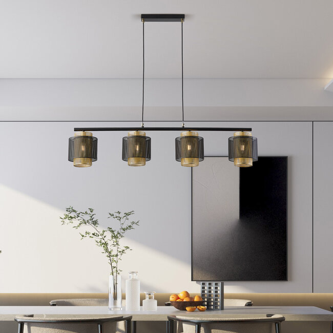 Avec son design chic et ses détails dorés, cette lampe crée immédiatement une atmosphère chaleureuse dans votre maison. La lampe translucide offre également un effet d'éclairage ludique. Cette lampe est fournie sans ampoules. Les ampoules souhaitées peuvent être commandées séparément. Cela présente l'avantage que vous pouvez choisir la combinaison de votre choix.