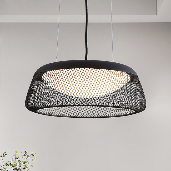 Cette magnifique lunette attirera tous les regards dans votre intérieur. Le cadre noir lui confère un aspect robuste qui convient parfaitement à un style moderne ou industriel. L'abat-jour ouvert et la structure en filet créent un effet lumineux ludique sur vos meubles, vos murs et votre plafond. Les LED intégrées blanc chaud sont graduables pour créer votre propre atmosphère. Suspendez la lampe dans le couloir, le salon ou au-dessus de la table à manger et vous verrez quel magnifique jeu de lumière cette lampe crée.
