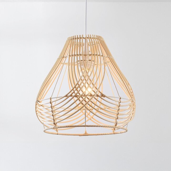 Cette élégante suspension en rotin tressé diffuse une lumière chaleureuse et chaleureuse et s'intègre parfaitement aux intérieurs bohèmes, scandinaves ou japonais. Son design ouvert crée un jeu de lumière ludique au plafond. Équipée d'une douille E27 (ampoule non incluse), cette suspension vous offre la liberté de choisir la source lumineuse qui s'harmonisera avec votre intérieur, d'une lumière LED chaleureuse à une ampoule à filament décorative. Que vous la suspendiez au-dessus de la table à manger, dans le salon ou dans la chambre, elle offrira un éclairage élégant et chaleureux où que vous soyez.