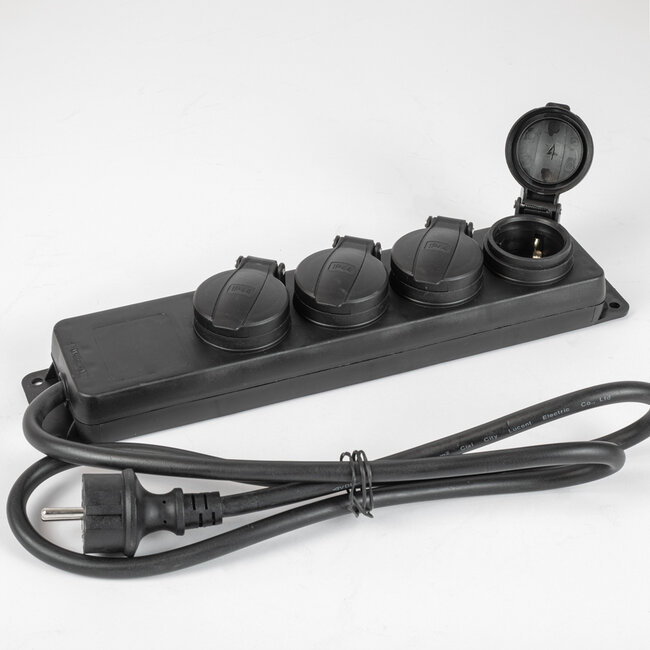 Cette rallonge robuste en caoutchouc est idéale à utiliser pour obtenir une longueur supplémentaire à la prise. Cette rallonge est dotée d'une multiprise de 30 cm de courant à quatre fiches, chacune équipée d'un rabat. Le câble de rallonge de 1,5 mètre convient lorsqu'une petite distance doit être couverte. Pour une plus grande distance, vous pouvez choisir la rallonge de 5 ou 10 mètres.