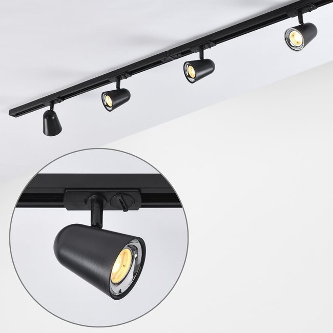 Dans un système de rail monophasé, tous les spots sont allumés sur un seul groupe, ce qui rend le rail plus sophistiqué et plus adapté à l'utilisation par les consommateurs. Un système de rail triphasé est plus souvent utilisé dans les magasins et autres zones commerciales. Dans ce cas, les spots de la voie peuvent être allumés et éteints séparément en 3 groupes.