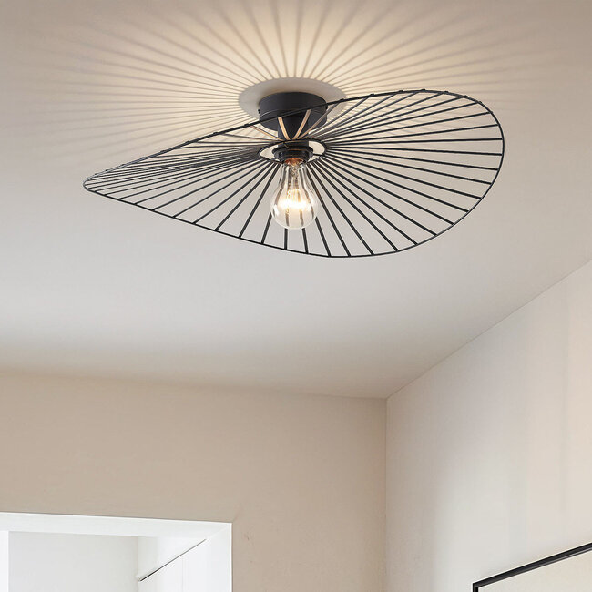 Vous êtes à la recherche d'une lampe innovante pour illuminer votre intérieur ? Le plafonnier Cirque est alors un choix tout à fait approprié. La lampe a une touche industrielle, mais a un caractère ludique grâce à sa forme ronde et douce. Le luminaire est fabriqué en métal robuste de couleur noire. Cela lui confère une base solide. Une source de lumière chaude de votre choix crée un contraste agréable.