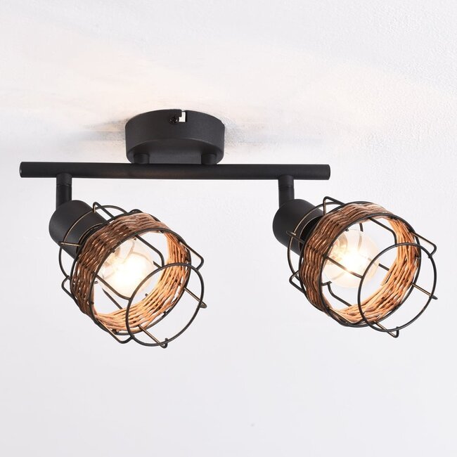 Optez pour un élément naturel dans votre intérieur avec le plafonnier Harun. Avec ses deux spots rotatifs, en métal noir et en rotin tressé, Boho allie le chic à l'industriel. Le cadre ouvert crée de belles ombres au plafond.