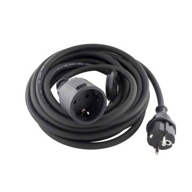 Ces rallonges en caoutchouc solide (néoprène) sont étanches aux projections d'eau (IP44) et donc idéales pour une utilisation en extérieur. Même si vous n'utilisez pas le câble, vous pouvez protéger la rallonge avec le recouvrement en caoutchouc contre la pluie. Les cordons robustes sont disponibles en six tailles : 1 mètre, 3 mètres, 5 mètres, 10 mètres, 20 mètres, 25 mètres, 30 mètres et 50 mètres. L'épaisseur du câble de mise à la terre est de 3 * 1,5mm². Assurez-vous d'utiliser un étui de protection approprié pour une utilisation en extérieur prolongée afin de protéger les connecteurs contre les intempéries.