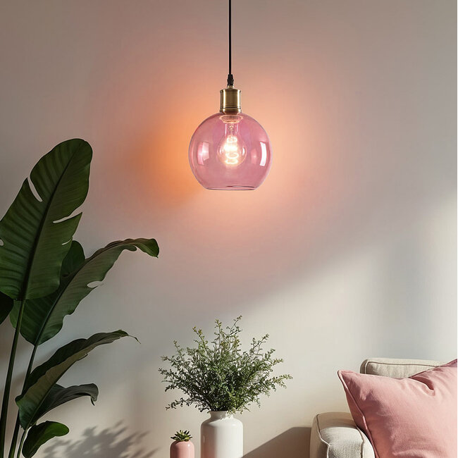 La longueur totale de la lampe est de 146 cm. Le cordon a une longueur maximale de 120 cm et peut être réglé en hauteur. De cette façon, vous pouvez décider à quelle hauteur la lampe sera suspendue. La boule de verre a une hauteur de 17,5 cm et un diamètre de 19,5 cm.