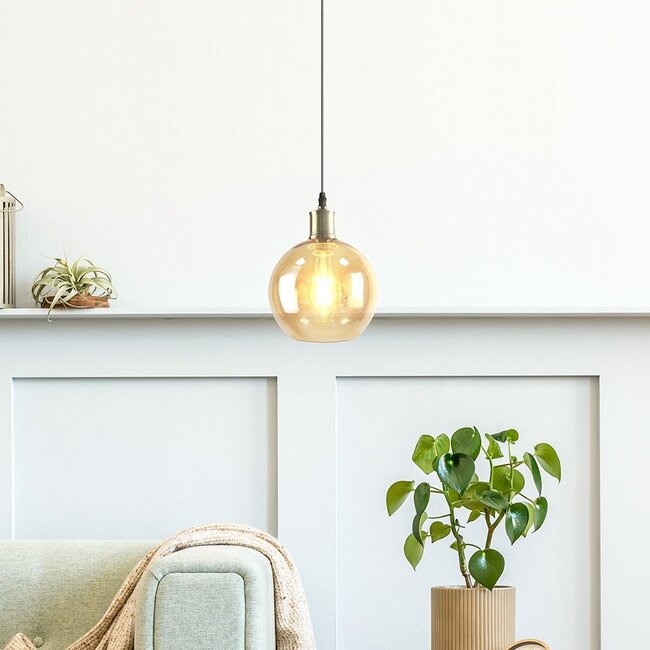 La longueur totale de la lampe est de 146 cm. Le cordon a une longueur maximale de 120 cm et peut être réglé en hauteur. De cette façon, vous pouvez décider à quelle hauteur la lampe sera suspendue. La boule de verre a une hauteur de 17,5 cm et un diamètre de 19,5 cm.