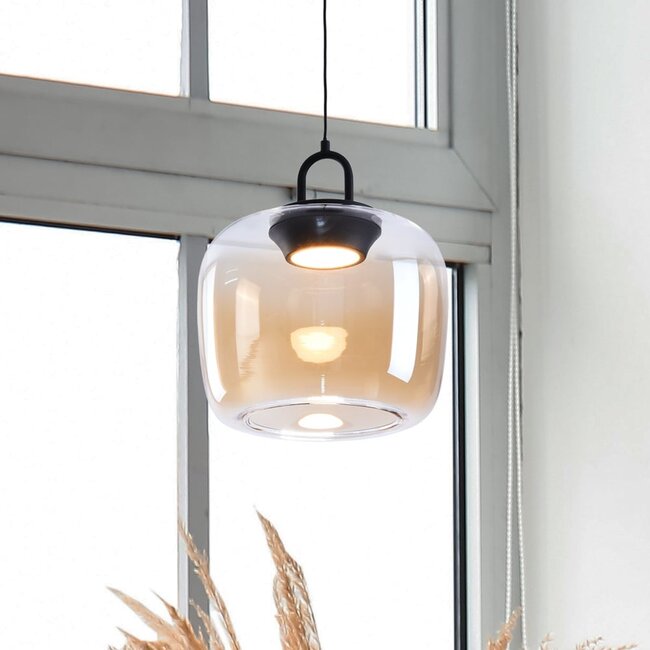 Vous cherchez une suspension qui attire immédiatement le regard ? Zahra est le choix idéal. Son verre ambré à la finition dégradée et son cadre noir offrent un bel éclat et confèrent à votre espace une touche vintage. Sa couleur claire et son design épuré en font un ajout idéal à un intérieur moderne. Les LED à intensité variable, d'un blanc chaud (3000 K), créent une lumière agréable et chaleureuse, transformant n'importe quelle pièce de votre maison en un havre de paix.