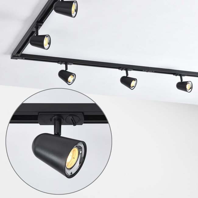 Dans un système de rail monophasé, tous les spots sont allumés sur un seul groupe, ce qui rend le rail plus sophistiqué et plus adapté à l'utilisation par les consommateurs. Un système de rail triphasé est plus souvent utilisé dans les magasins et autres zones commerciales. Dans ce cas, les spots de la voie peuvent être allumés et éteints séparément en 3 groupes.