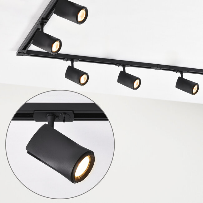 Dans un système de rail monophasé, tous les spots sont commutés sur un seul groupe, ce qui rend le rail plus sophistiqué et plus adapté à une utilisation grand public. Un système de rail triphasé est plus souvent utilisé dans les magasins et autres zones commerciales. Dans ce cas, les spots de la voie peuvent être allumés et éteints séparément sur trois groupes.