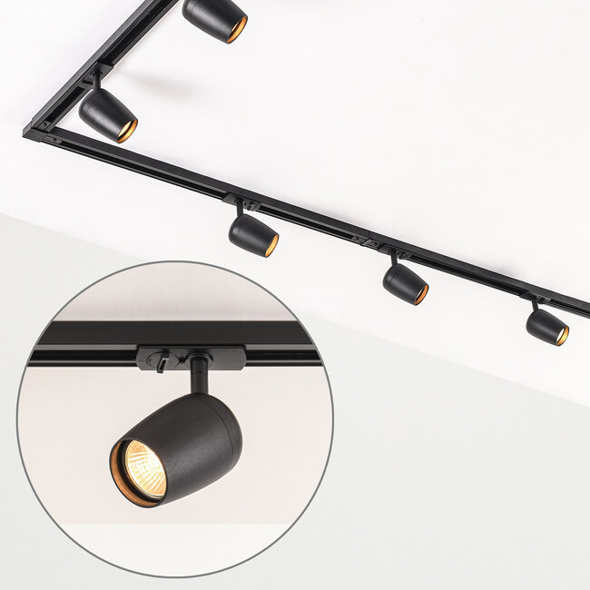 Dans un système de rail monophasé, tous les spots sont connectés à un seul groupe, ce qui rend le rail plus raffiné et plus adapté à un usage grand public. Un système de rail triphasé est plus souvent utilisé dans les magasins et autres espaces commerciaux. Dans ce cas, les spots sur rail peuvent être allumés et éteints séparément sur 3 groupes.