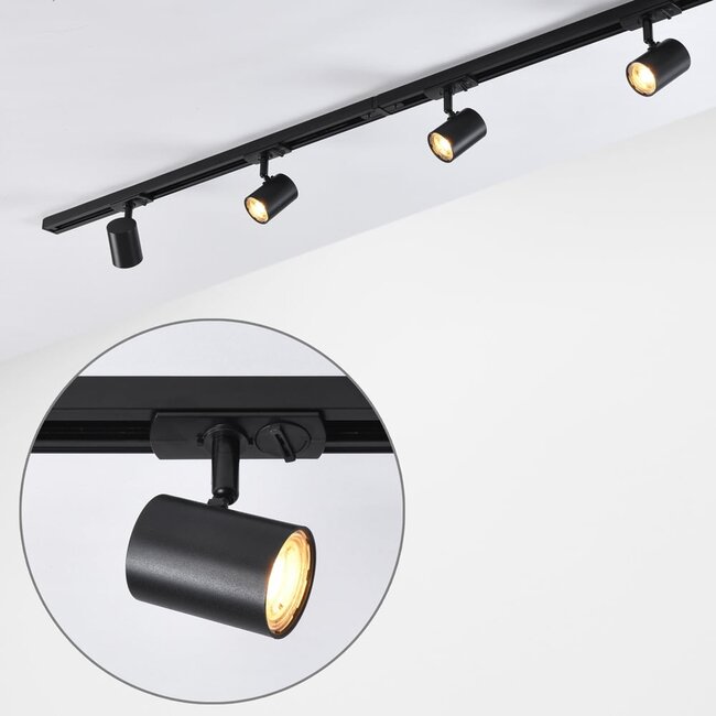 Dans un système de rail monophasé, tous les spots sont allumés sur un seul groupe, ce qui rend le rail plus sophistiqué et plus adapté à l'utilisation par les consommateurs. Un système de rail triphasé est plus souvent utilisé dans les magasins et autres zones commerciales. Dans ce cas, les spots de la voie peuvent être allumés et éteints séparément en 3 groupes.