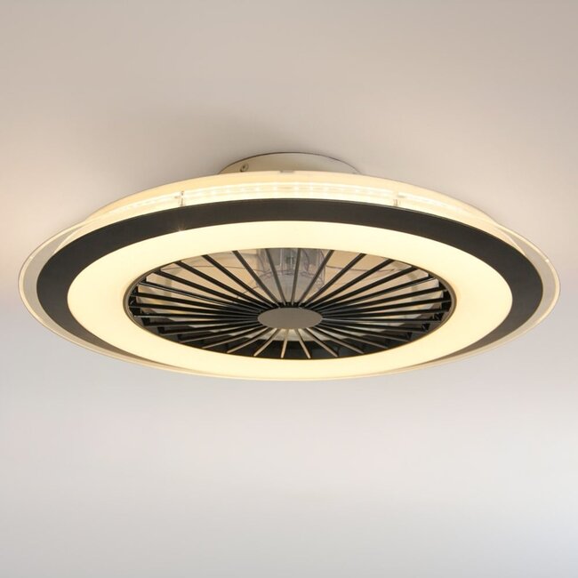Le ventilateur de plafond Meva a un diamètre de 53 centimètres et une hauteur de 17 centimètres. L'indice de protection IP20 signifie que le ventilateur ne peut être utilisé qu'à l'intérieur et dans des pièces sèches. Vous pouvez contrôler la source lumineuse à l'aide de la télécommande fournie. En plus de modifier l'intensité de la lumière, vous pouvez également régler la chaleur et la couleur souhaitées. Avec la télécommande, vous pouvez facilement choisir une lumière blanche extra chaude (2700K) ou une lumière blanche neutre (5000K). Vous pouvez également utiliser la télécommande pour régler la lampe sur différentes couleurs ou choisir une séquence festive parmi les différentes couleurs disponibles.
